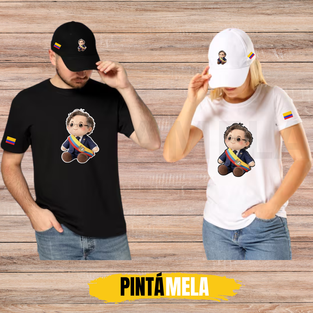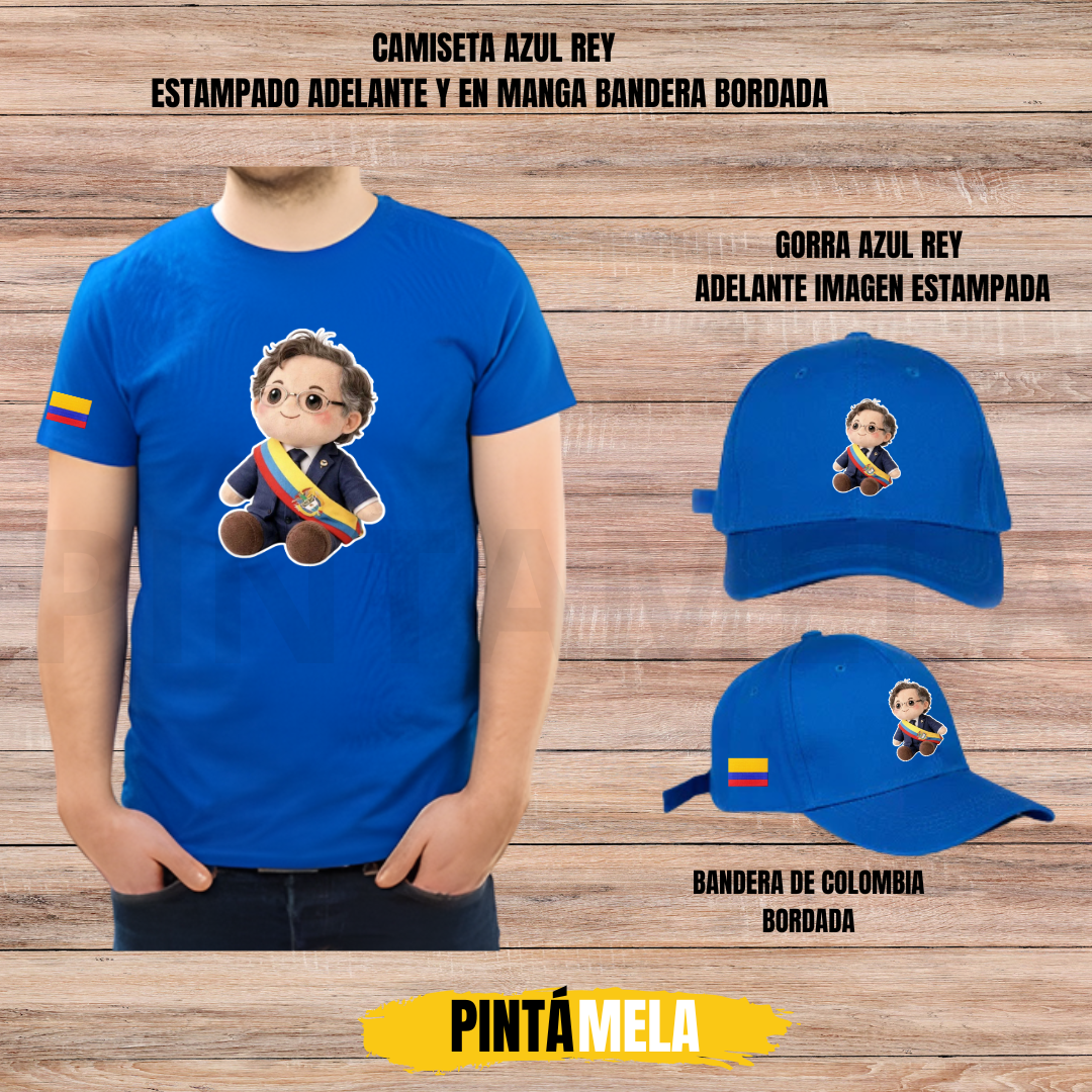 Luce con orgullo este exclusivo combo compuesto por camiseta estampada con diseño frontal tipo carta y bandera bordada en manga, acompañado de una gorra en drill estampada con la imagen de P/trico y bandera bordada lateral.